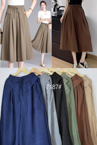 7187 กางเกงขายาว มีกระเป๋า รอบเอวก่อนยืด 27 นิ้ว ยืดสุด 38 นิ้ว ขายาว 27 นิ้ว ขายคละสี