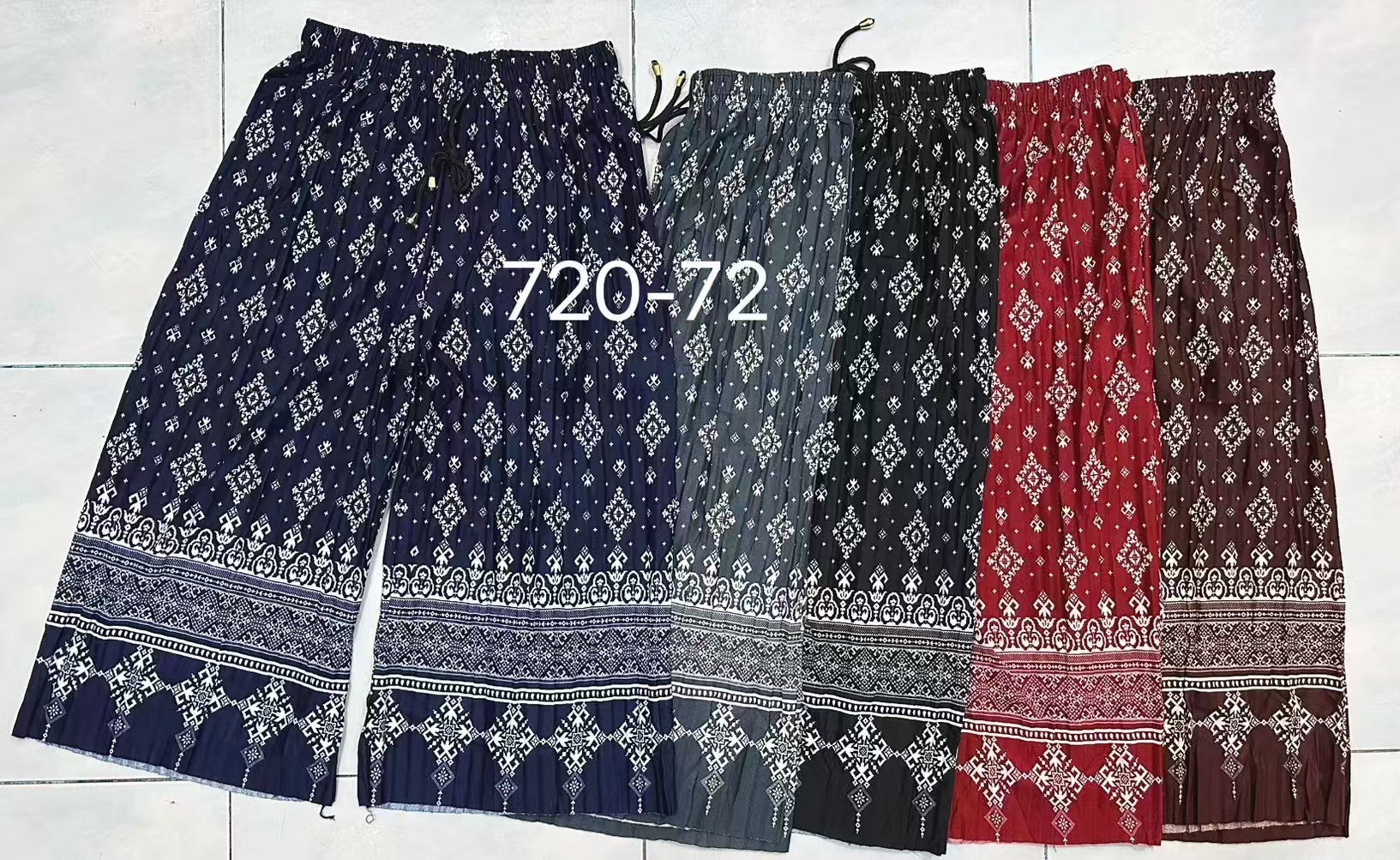 720-72 กางเกงอัดพลีท ผ้าหนังไก่ มีเชือกผูก ขายคละสีค่ะ