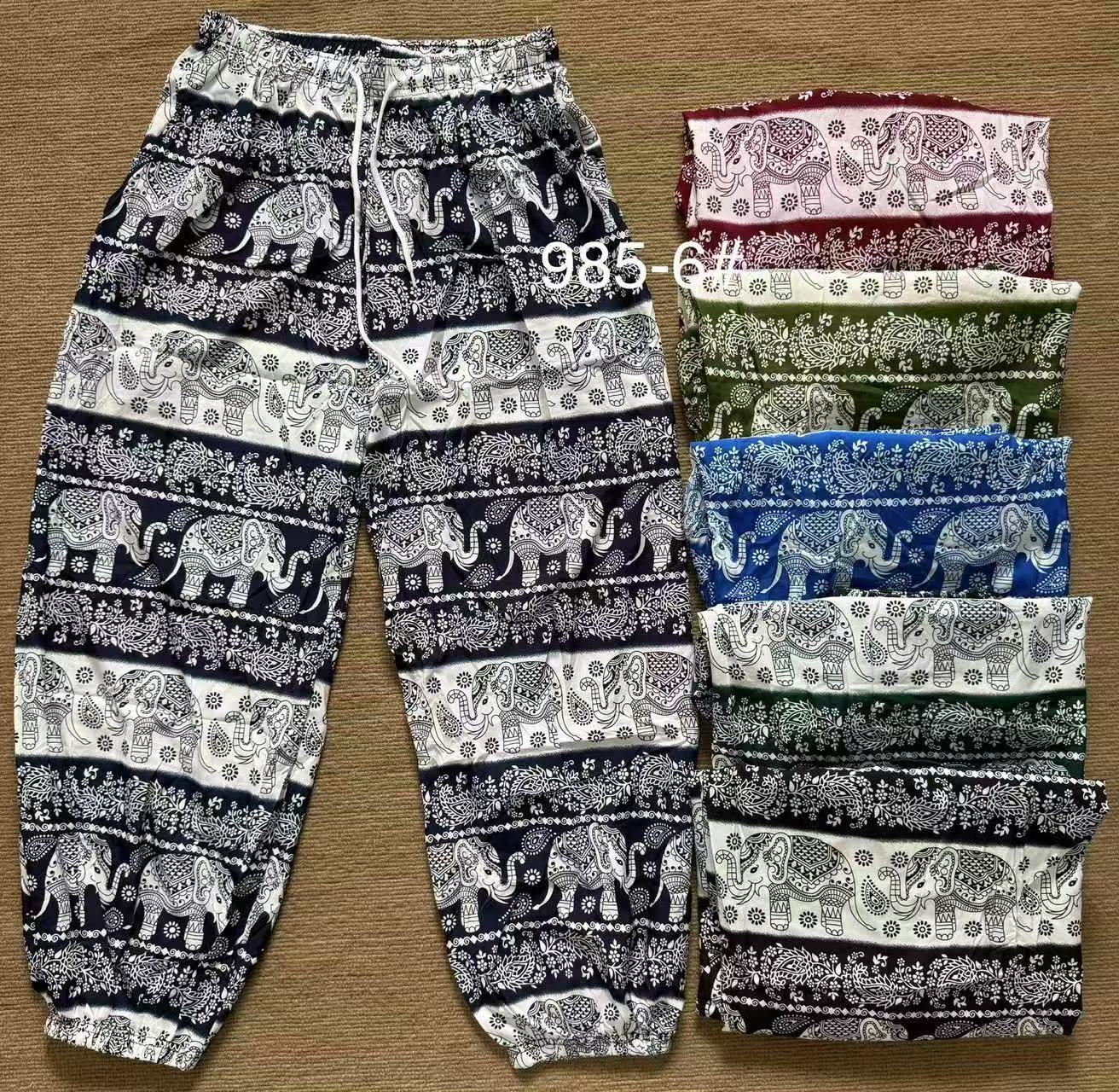 985-6 กางเกงลายช้างผ้าใหม่อิตาลีทรงขาจั้ม มีกระเป๋า2ข้าง ขายคละสี
