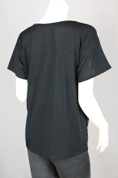 TD72A เสื้อสีดำ ผ้าพิมพ์ลายดอกไม้ รอบอก 39 นิ้ว ความยาว 25 นิ้ว
