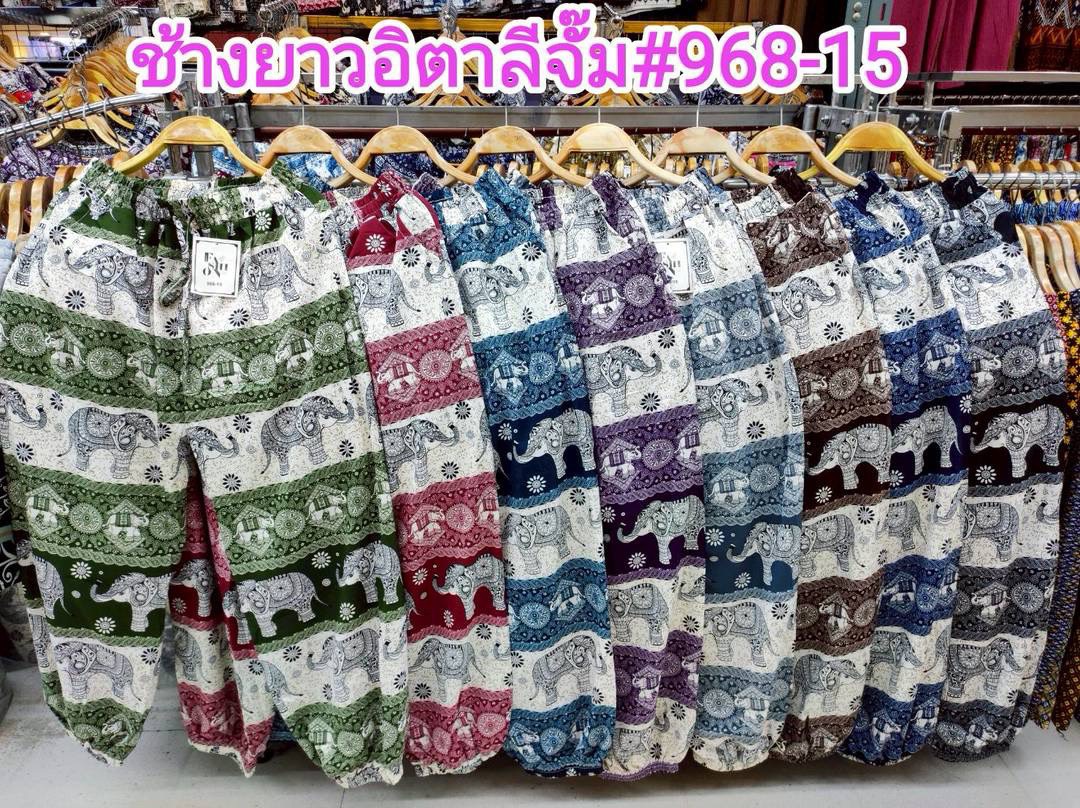 968-15 กางเกงลายช้างผ้าใหม่อิตาลีทรงขาจั้ม มีกระเป๋า2ข้าง ขายคละสี