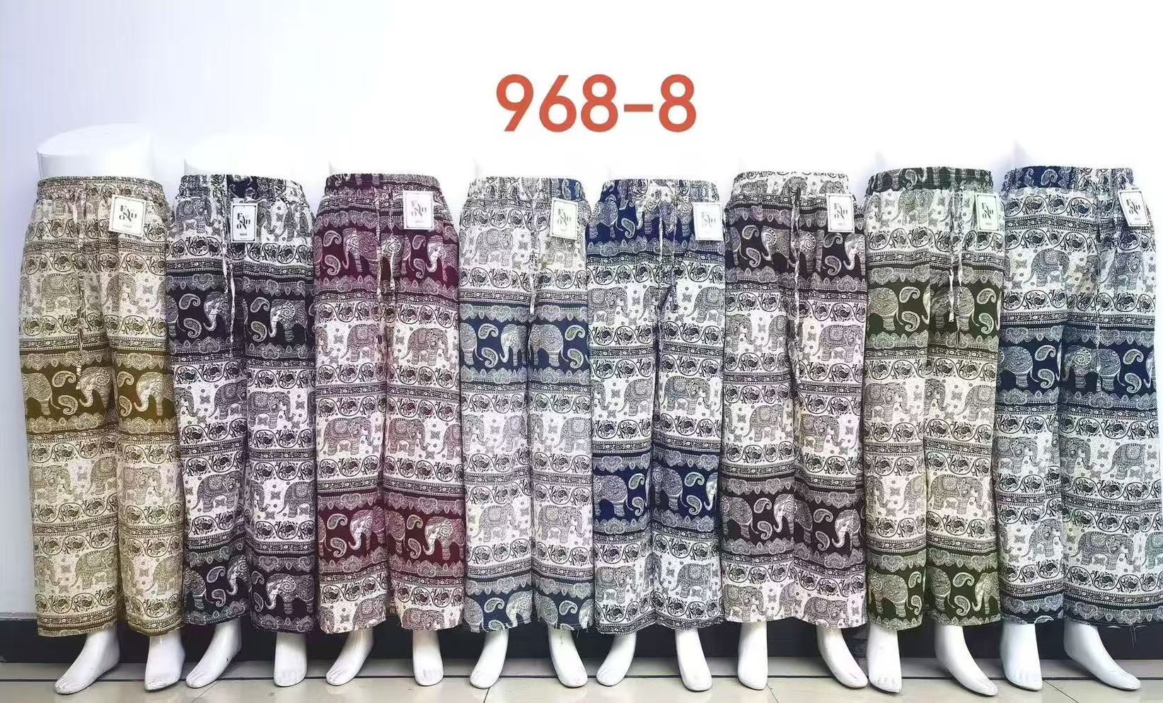 968-8 กางเกงลายช้างผ้าใหม่อิตาลีทรงขาปล่อย มีกระเป๋า2ข้าง ขายคละสี